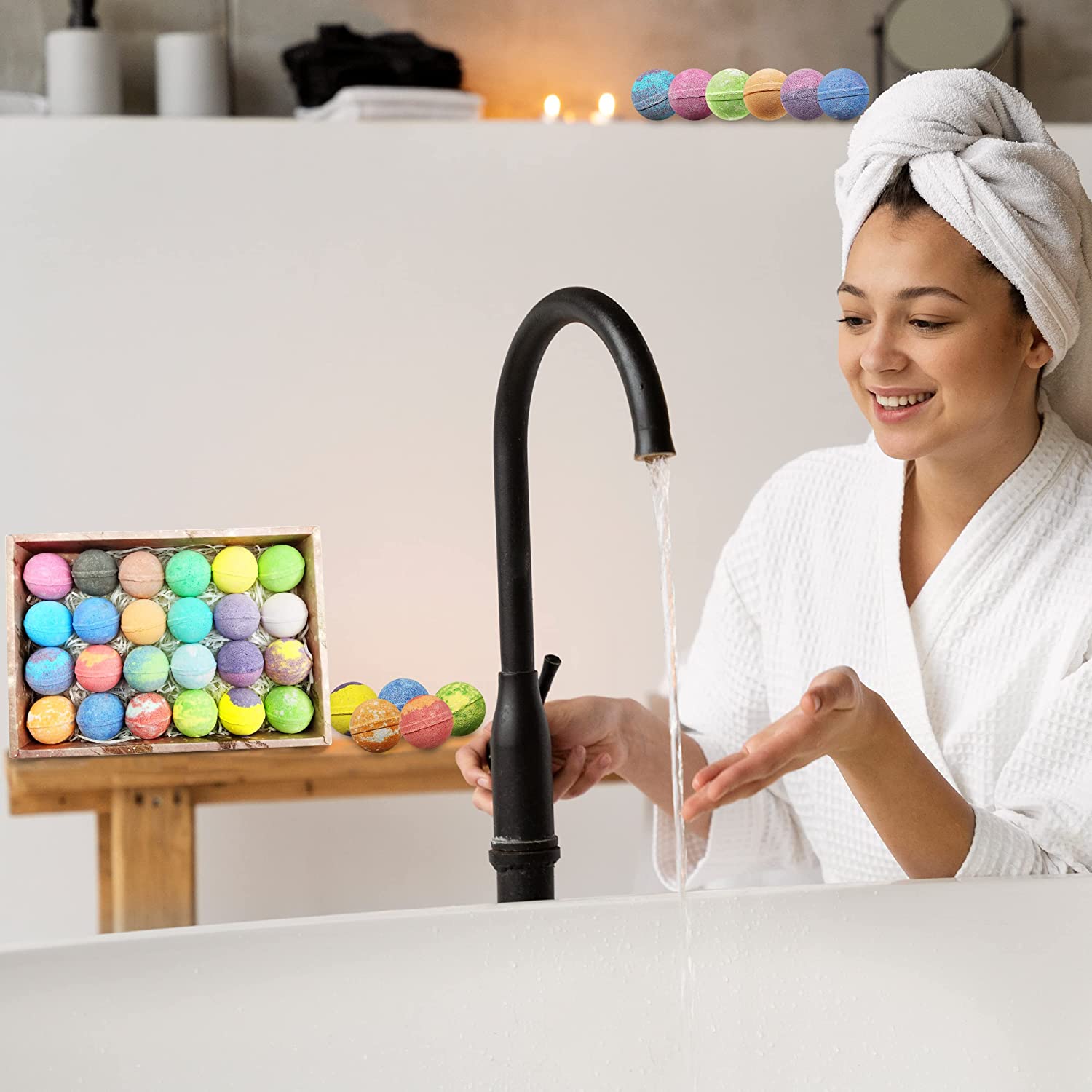• SUPERIOR VALUE-BULK BATH BOMBS: ✨ Twice the aroma compared to other brands. BEST VALUE - LOW PRICE - ZERO COMPROMISE ON QUALITY . More fizzies with a vast collection of aromatherapy uses, 1 to suit every mood!