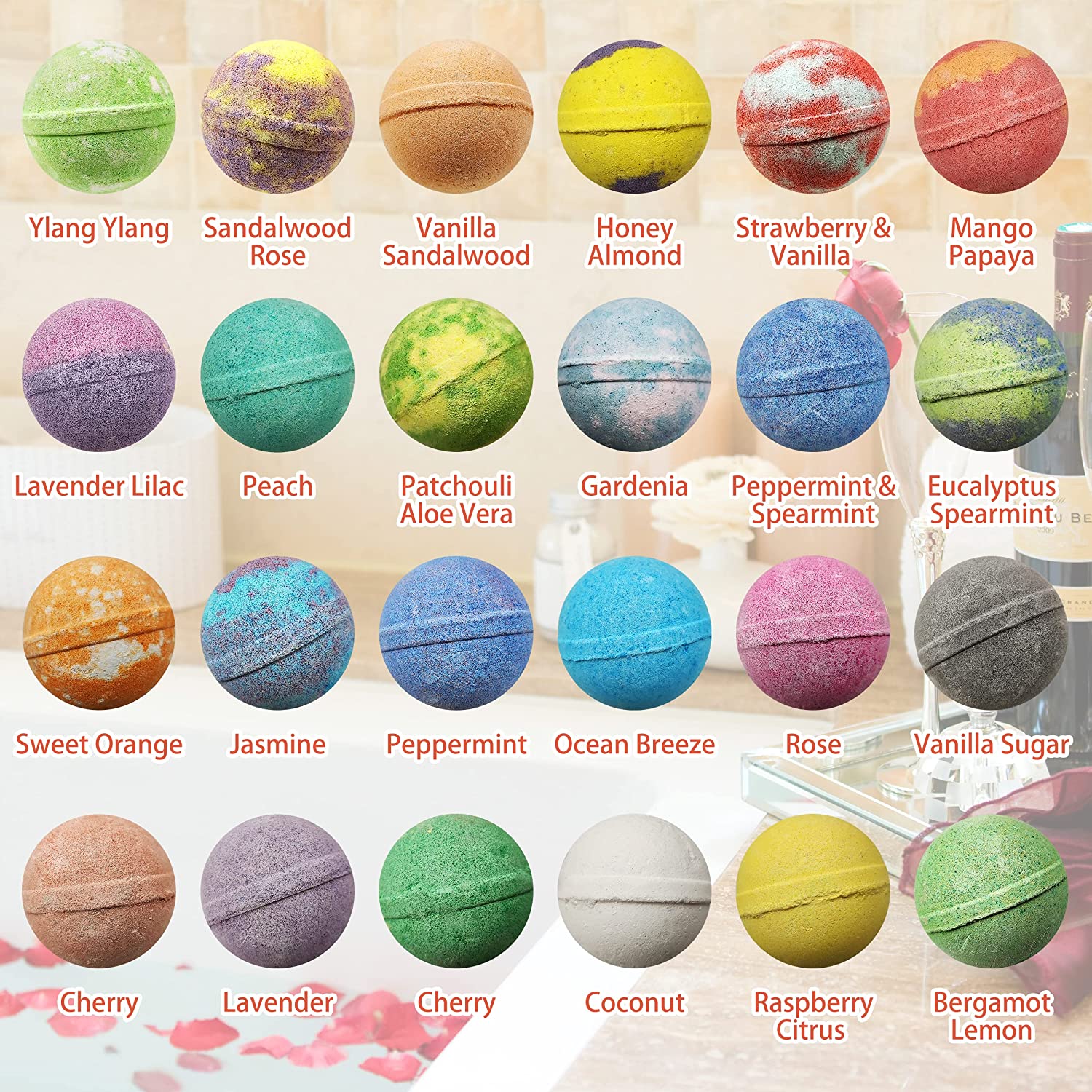 • PREMIUM QUALITY: ✨ Handmade, natural bath bombs, Beats the most expensive Bath Bombs in quality! Each Bath Ball has a unique blend of essential oils. Party Favor Bath Balls Gift Set Includes the following scents: Ocean, Love, Lavender, Citrus, Wellness, Clarity, Vitamin C, Grapefruit, Detox, Restore, Balance, Cleanse. There's a bombs perfect for every mood!