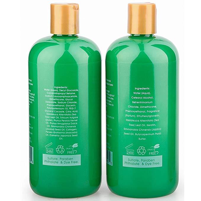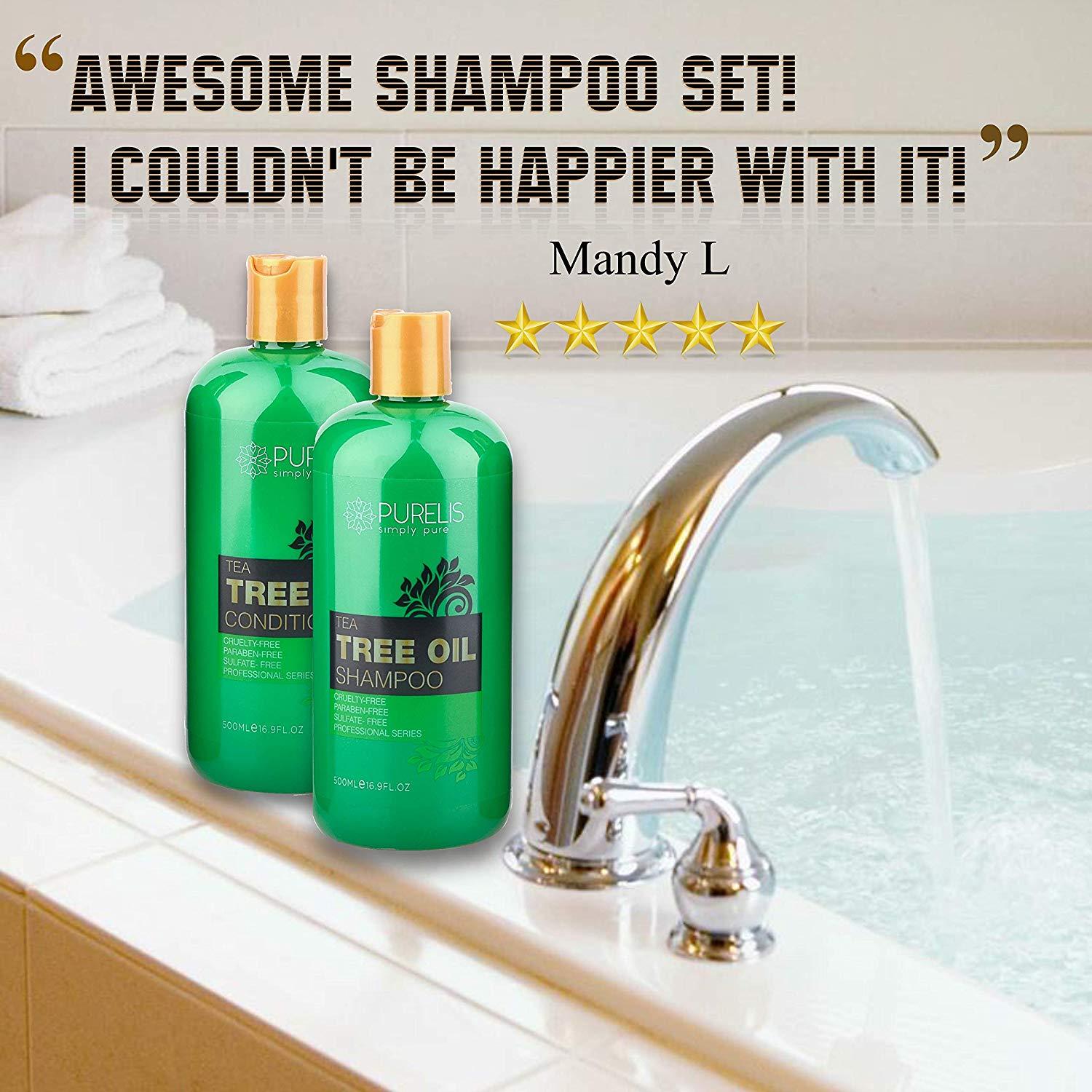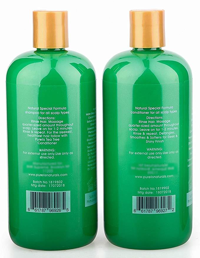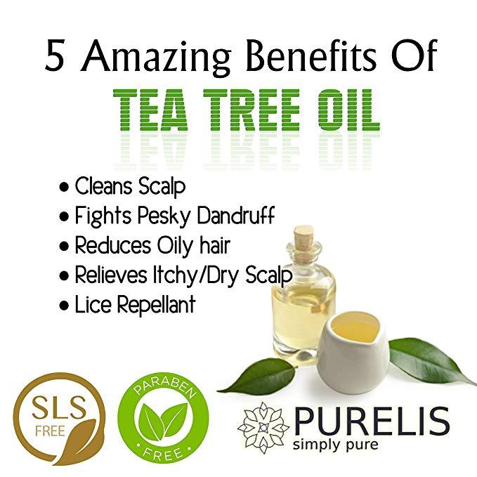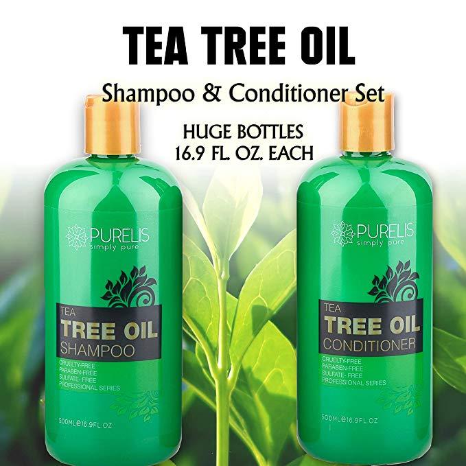 • 100% PURE TEA TREE OIL - Purelis Tea Tree Oil is combined with a variety of carefully selected oils to create the best and most nourishing shampoo and conditioner for your hair.Tea Tree Oils target dandruff flakes + itchiness + irritation with natural antibacterial & antiseptic active ingredients to nourish and protect hair & scalp.