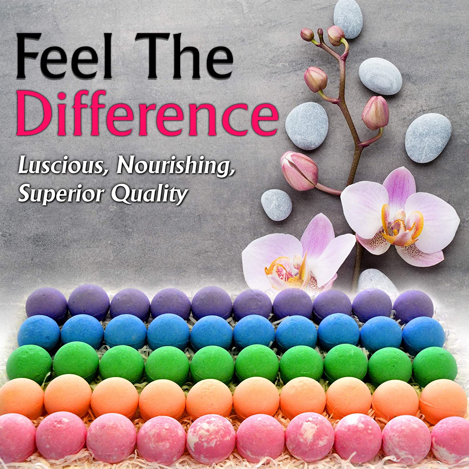 • SUPERIOR VALUE: Our gift set contains 50 different natural bath fizzies to create unique experiences that will take your senses to a place you can only imagine. You get premium quality and a super large variety so you can enjoy a relaxing soak with our fine bath bombs every day!