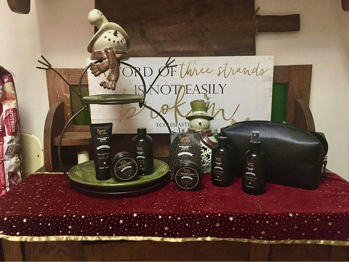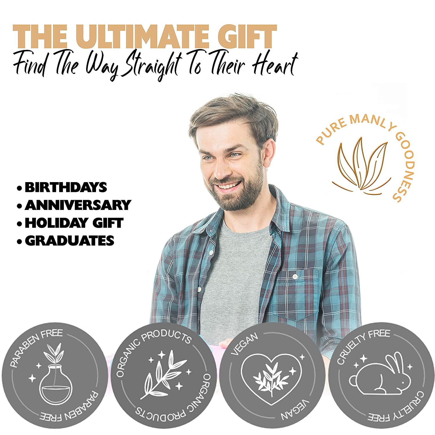 • LUXURIOUS GIFT 🎩Give the gift of soothing skincare. Is there any better way to treat yourself, husband, or your loved ones, other than a wellbeing boost of sheer manly bath indulgence? Impress your special man with a deluxe relaxation gift. Ideal Holiday presents, Christmas, anniversary, wedding, thank you gifts, Father’s day gift ideas, special guy’s birthday gifts for him, boyfriend, husband. Men of any age will enjoy this kit. Arrives Cellophane Wrapped in a reusable black bath Caddy Basket.