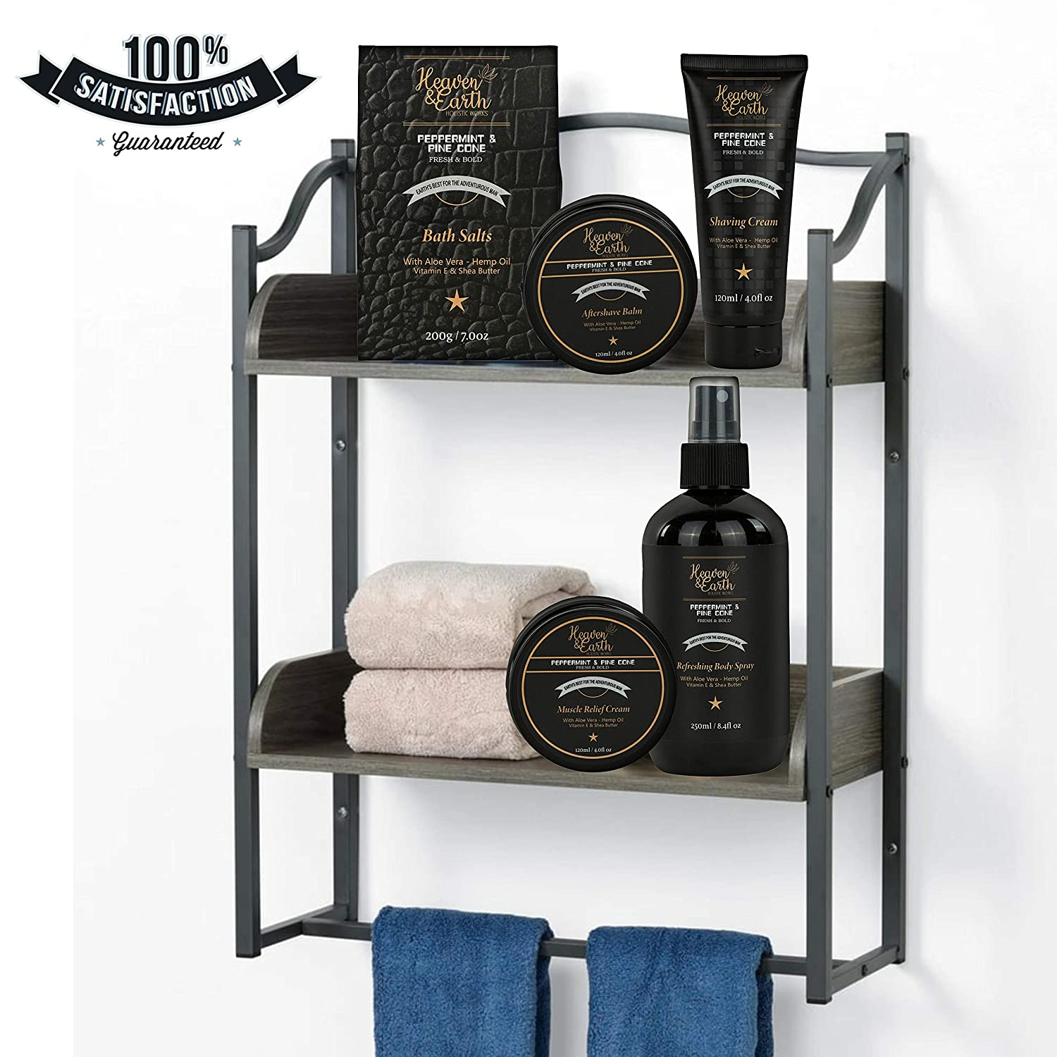 Christmas Grooming Gift For Men Natural Pinecone Peppermint Bath & Body Tote - Luxury Shaving, Skincare, Beard & Bath Self-Care Gift Set