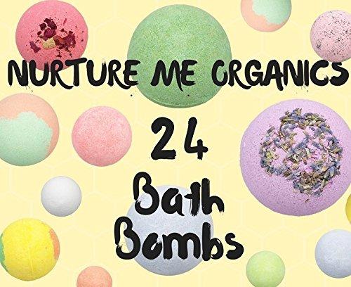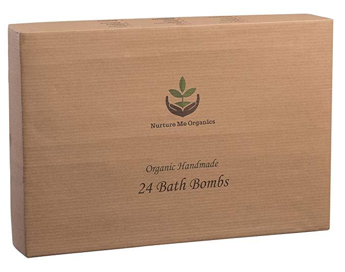 Gift Set of 24 Nurture Me Organic Bath Bombs, Large Bath Fizzies All Natural with Organic Shea & Cocoa Butter