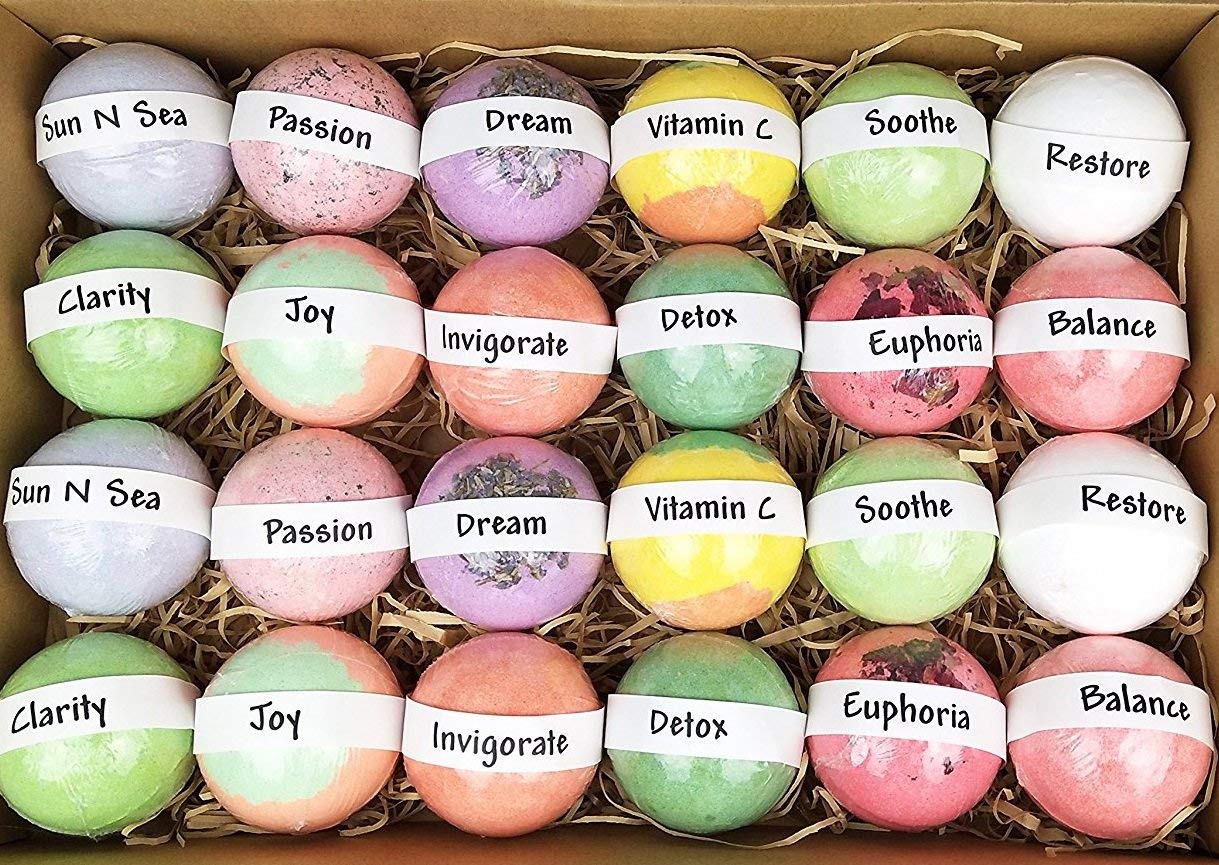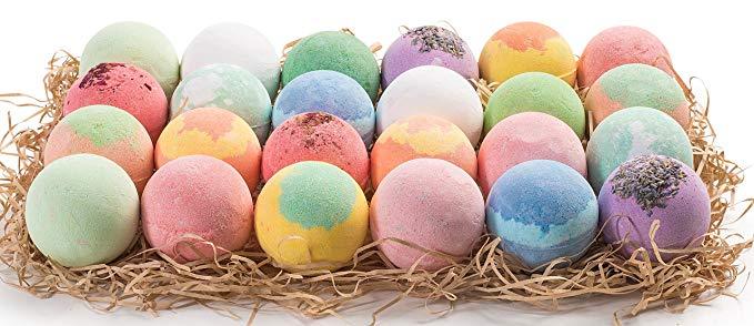 • Bath Bomb Gift Set of 24 HUGE Bath Bombs - Gift your loved ones with this elegant value pack of 24 bath bombs. This Spa Gift set includes a fragrance for every mood! Best holiday gift for Christmas, Mother's Day, Birthday, or "just because". Natural Bath Bombs are the ideal gifts for kids. Nurture Me Lush Bath Bombs makes the best bath bombs for kids & adults!