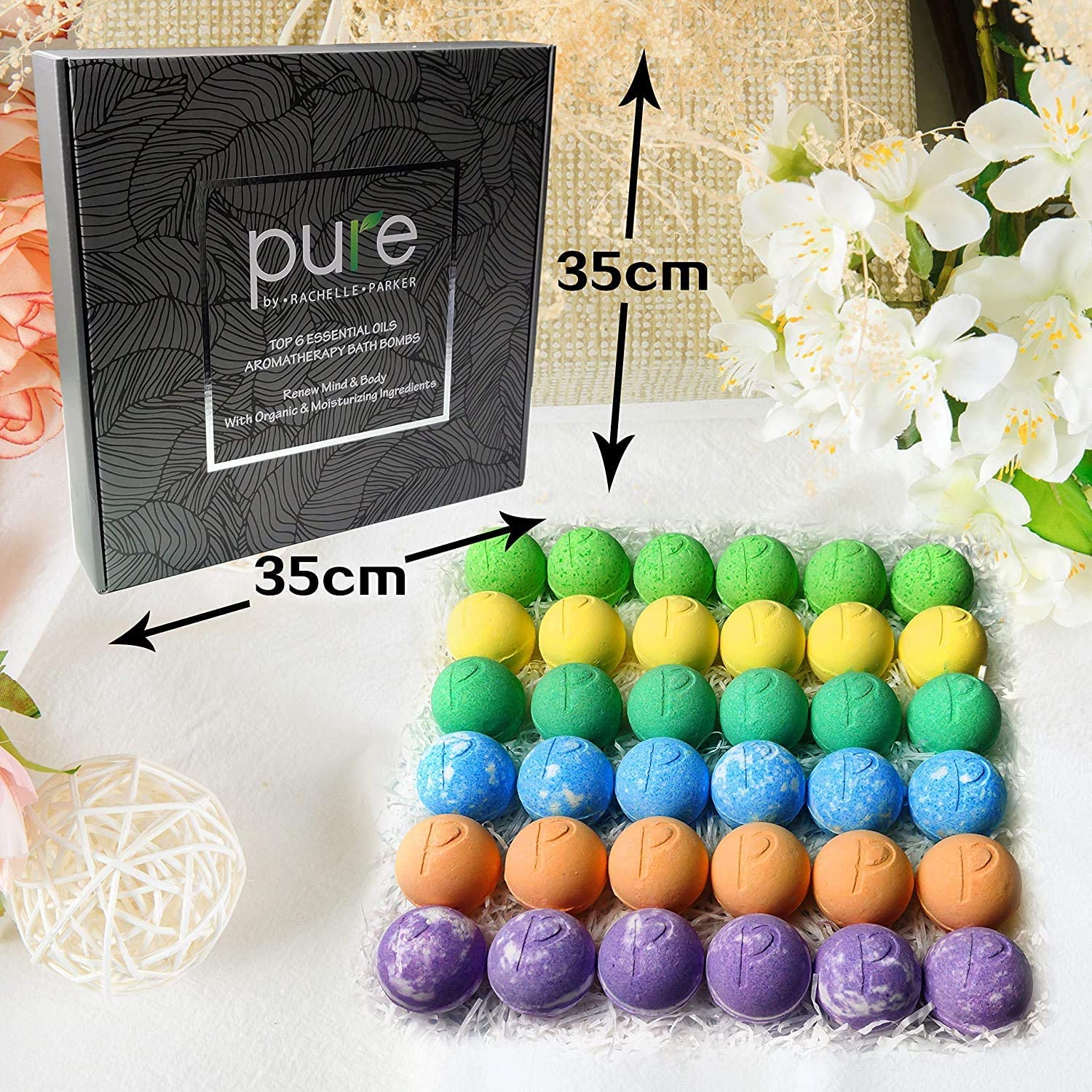 36 Bath Bombs Gift Set. Top 6 Essential Oils Bath Bomb Set for Women Men & Kids. Natural & Organic Ingredients- Lemongrass Orange Peppermint Tea Tree Eucalyptus & Lavender Essential Oil Bath Bombs