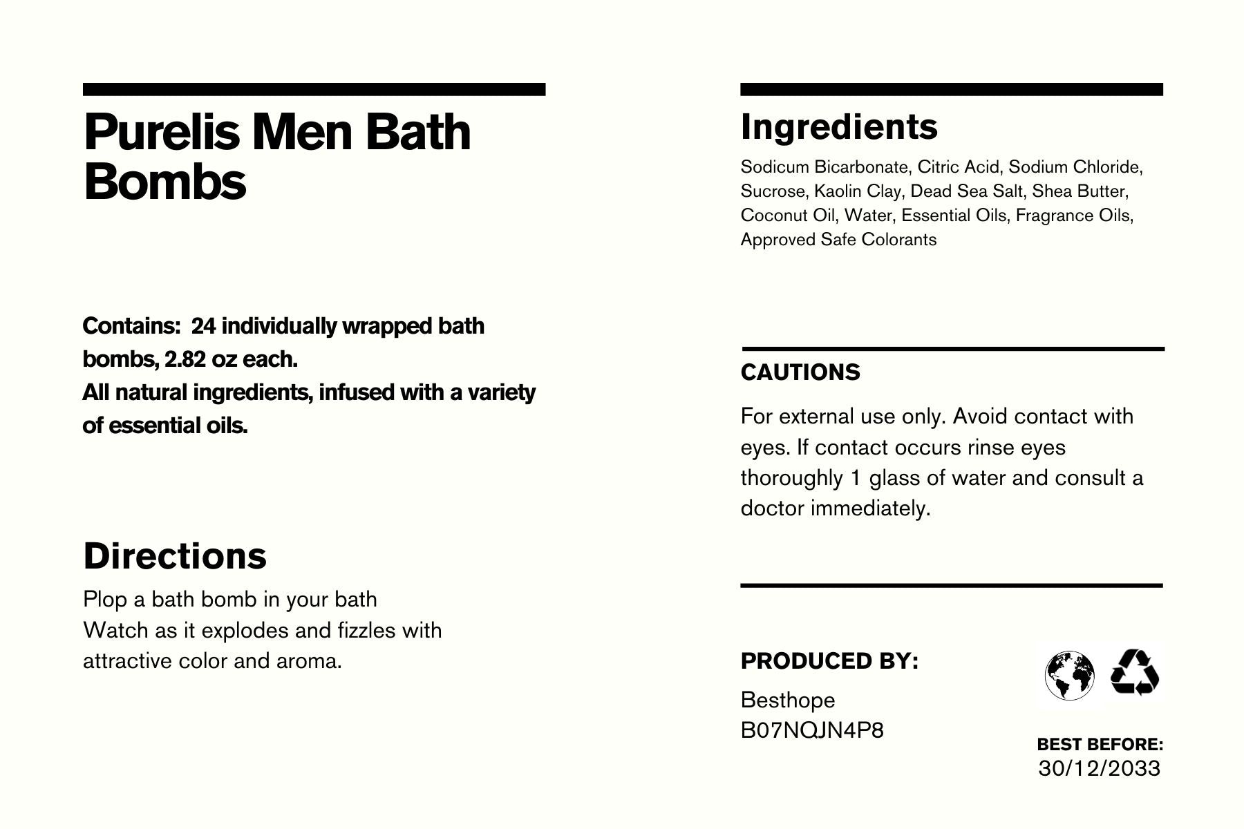 • Designed Specifically for Men: Luxuriously crafted 24 Natural Bath bombs, especially designed for men. Experience a refreshing and invigorating soak with scents tailored to male preferences. Purelis Bath Bombs offer a refreshing and invigorating experience, perfect for a relaxing soak after a long day.
