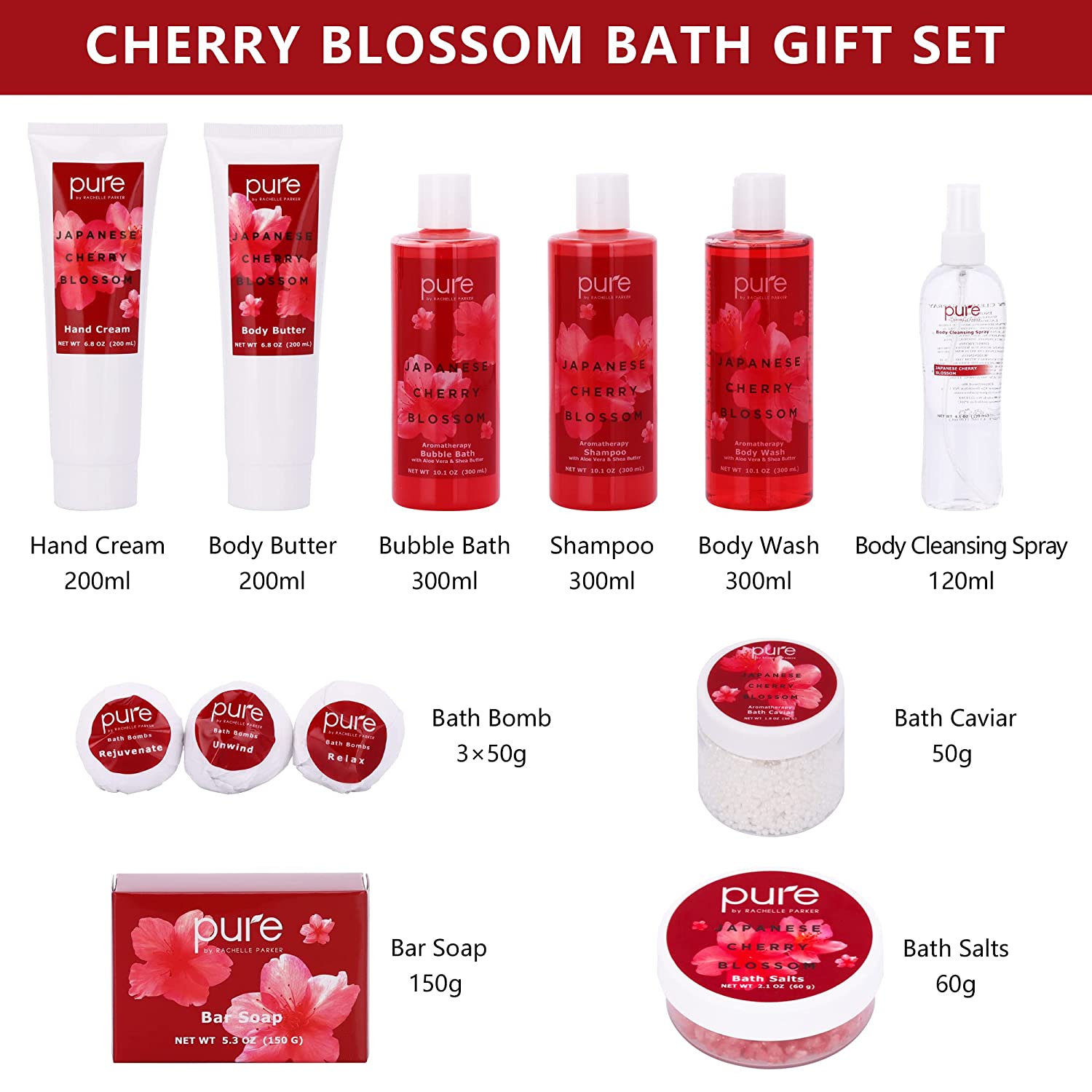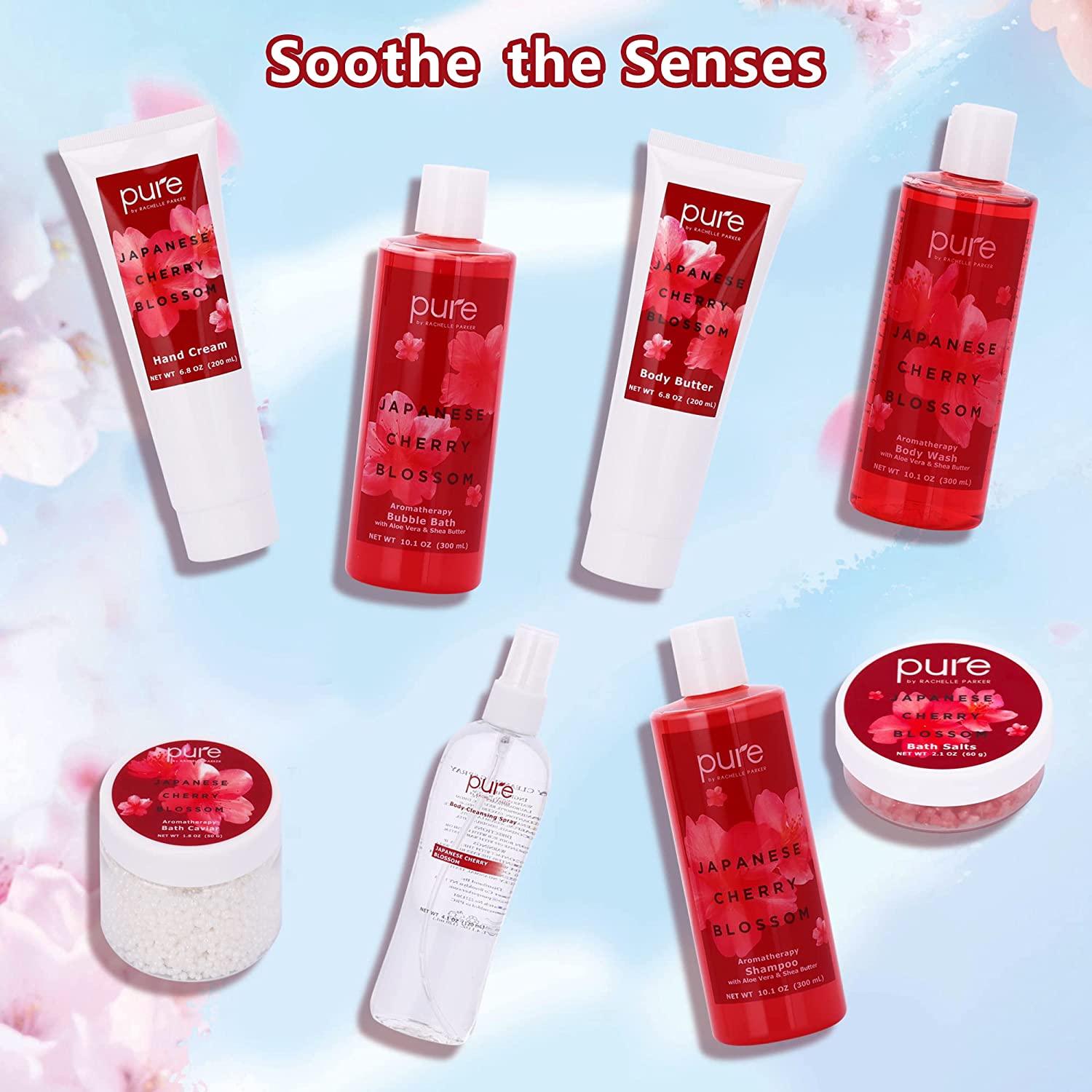 Love at first scent! Give the Gift of SELF-CARE with one of our beautiful Bath Sets. Everyone deserves a little bit of me time, so close your eyes and wrap your body in our sensual Japanese Cherry Blossom Fragrance.